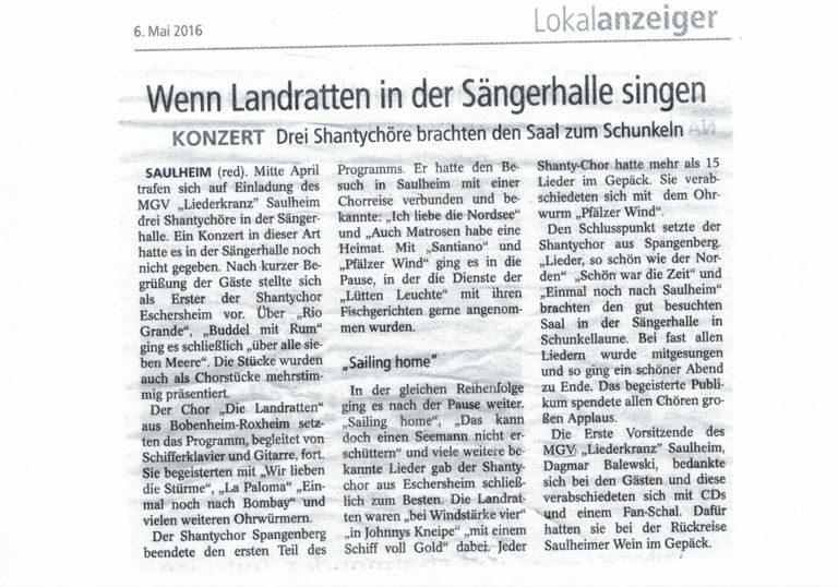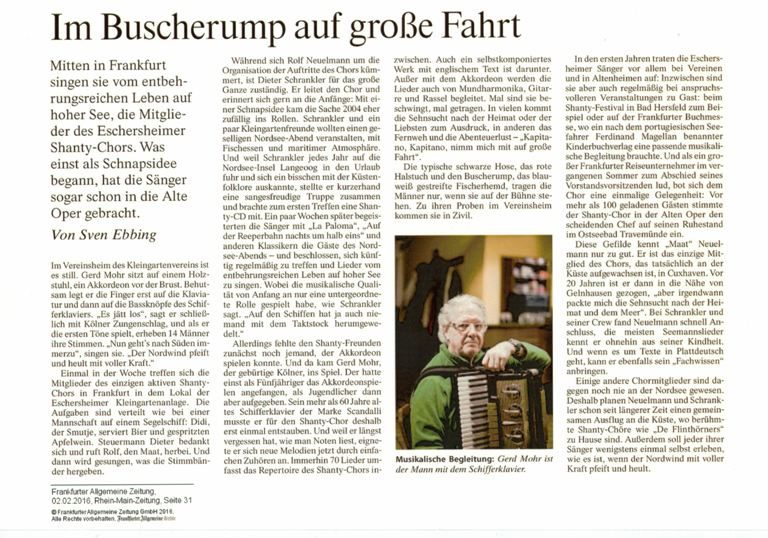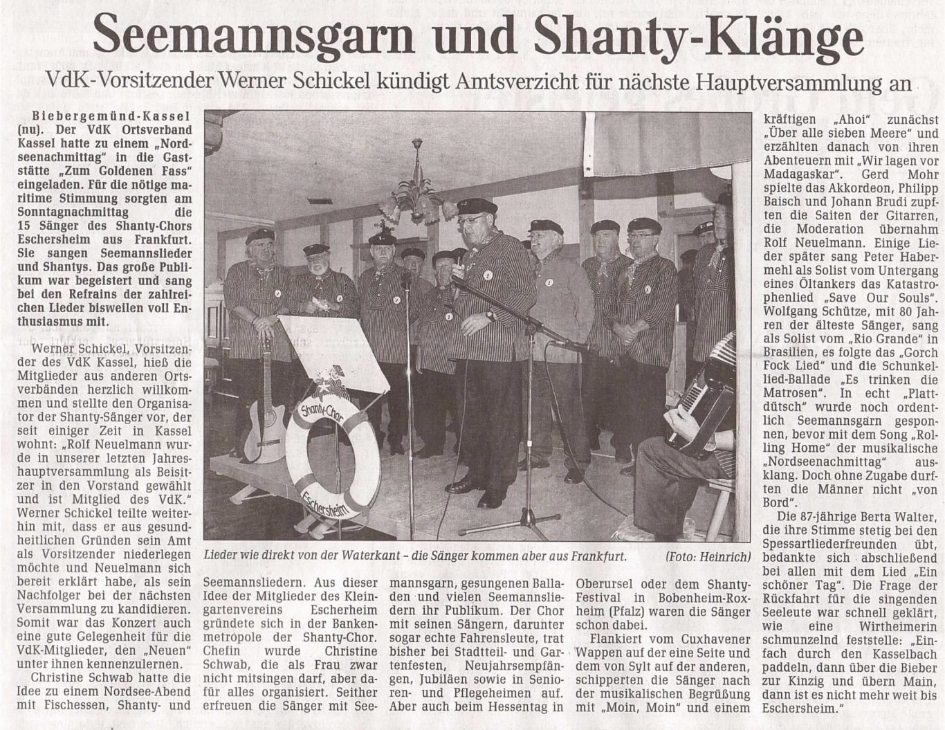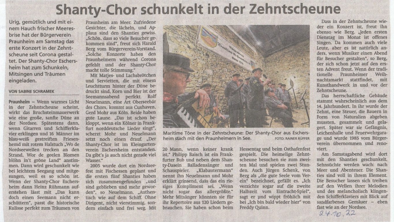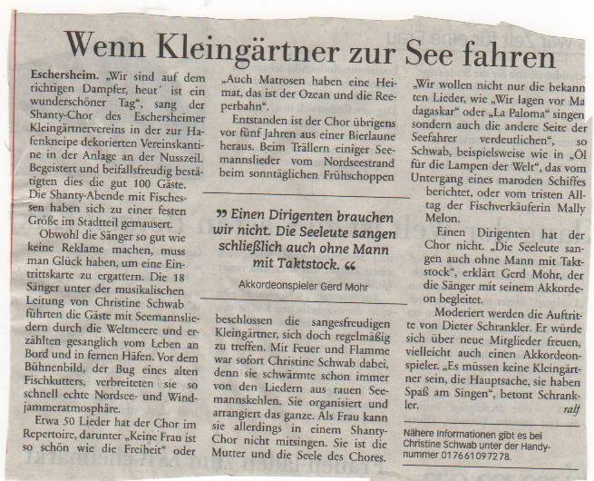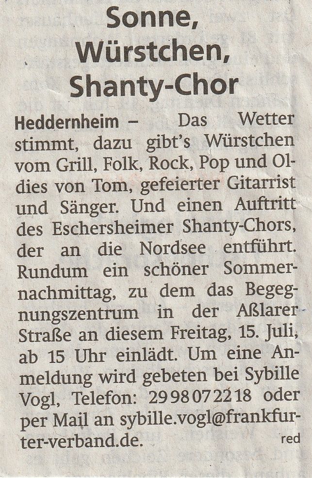 Unterstützung für die Gründung des Shanty-Chores Sossenheim