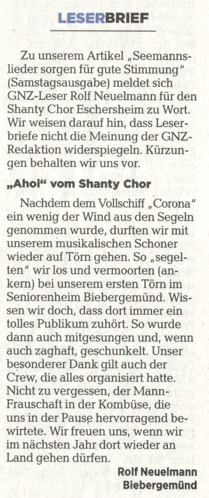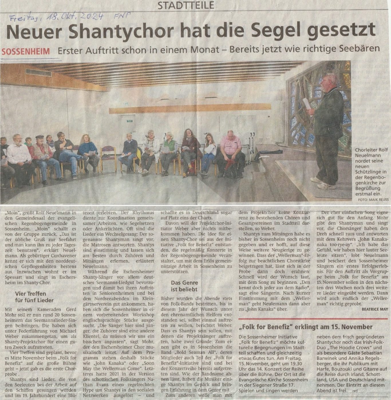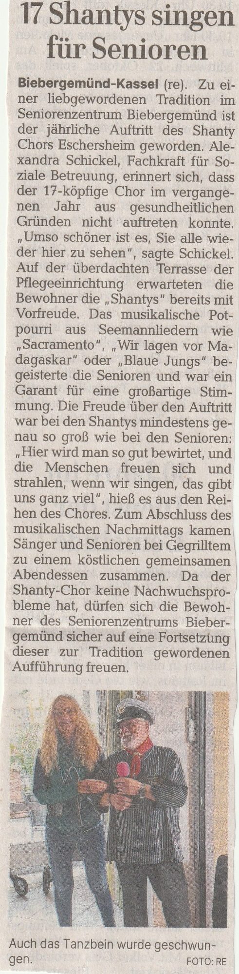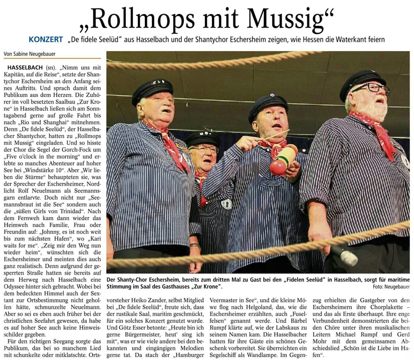 Unterstützung für die Gründung des Shanty-Chores Sossenheim